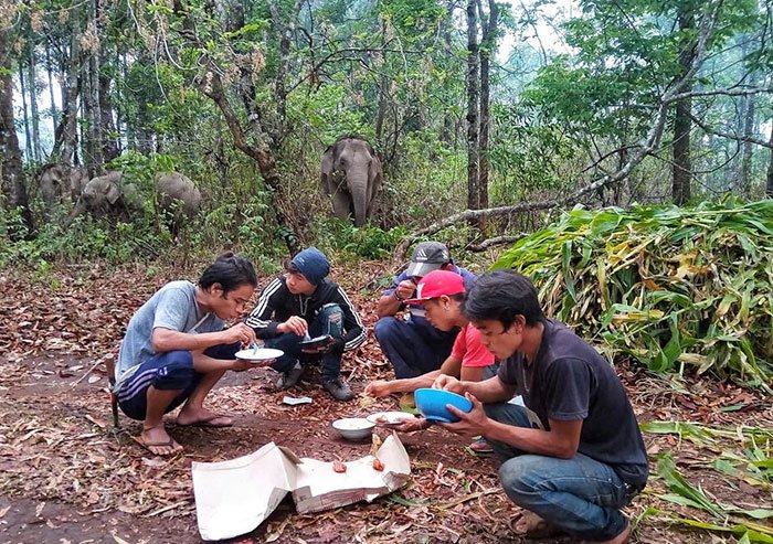 De nombreux propriétaires d’éléphants, ainsi que leurs animaux de compagnie, sont obligés de retourner vers leurs villages d’origine. De plus, ils sont obligés de le faire à pied, il n’y a pas d’argent pour le transport.