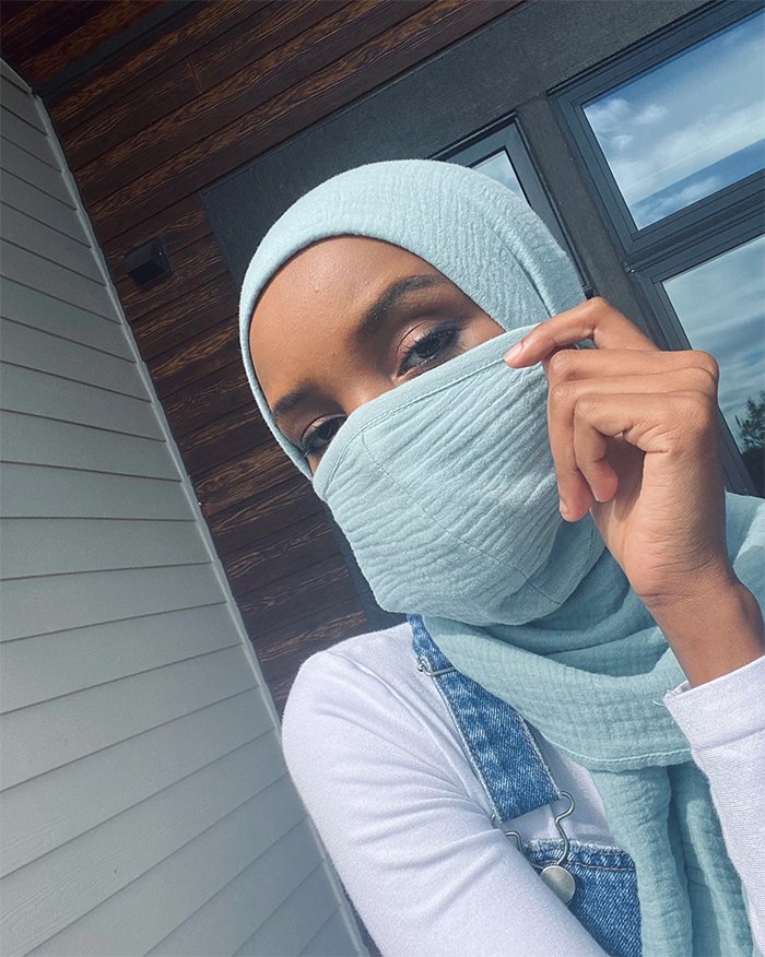 Elle a créé des foulards en collaboration avec la marque turque Modanisa. Un ensemble de hijab et de masques faciaux de Halima se vend à 45 $.